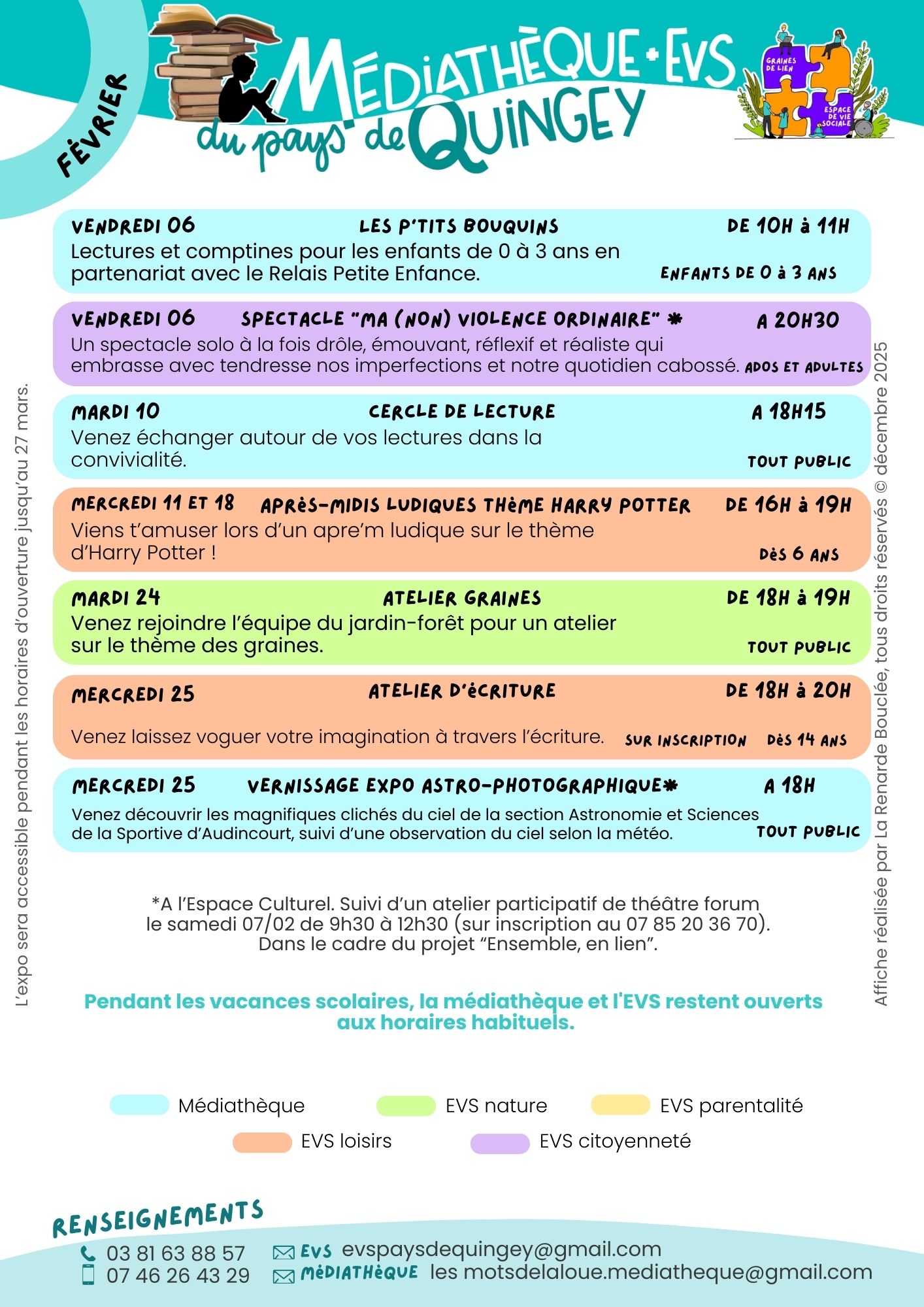 CALENDRIER DU MOIS DE FÉVRIER DE LA MEDIATHEQUE